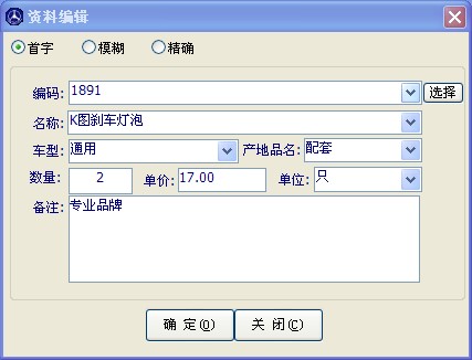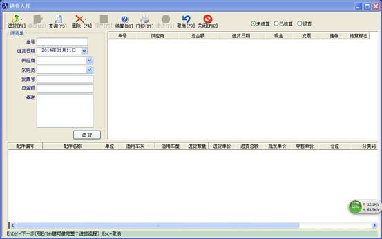 在左側(cè)輸入供應(yīng)商后,點擊“進貨”按鈕,打開配件資料錄入窗口如下圖