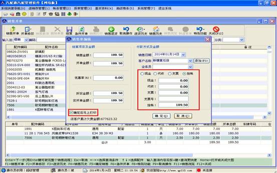 當客戶所要購買的配件都添加到下方的表格后,點擊上方的結(jié)算按鈕,進入結(jié)算操作