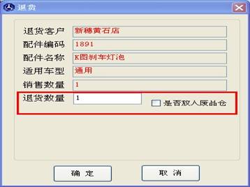點擊“退貨”按鈕后會彈出如下圖的窗口,在退貨數(shù)量里輸入退貨數(shù)。
