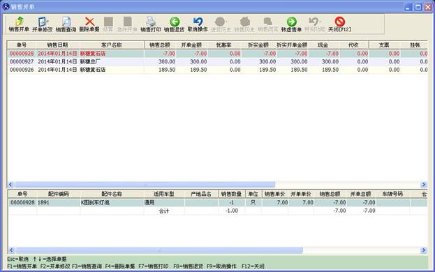 點擊“銷售開單”上面的“銷售瀏覽”按鈕可對以往的銷售單據(jù)進行查看
