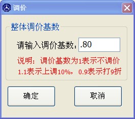 點擊“調(diào)價”按鈕,可對所選配件的單價集體調(diào)價,在調(diào)價窗口內(nèi)輸入調(diào)價基數(shù)點確定后會改變此單所有配件的單價。