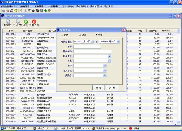 先使用查詢功能找到您要退貨的單子,如果您不記得單號可以根據(jù)時間范圍來查詢。查詢出某時間段的銷售后,選擇您要退貨的配件,點擊“退貨”按鈕,如下圖。