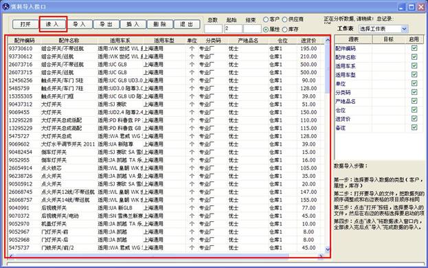 再點上方的“讀入”按鈕,將Excel 數(shù)據(jù)讀入到軟件里,如下圖