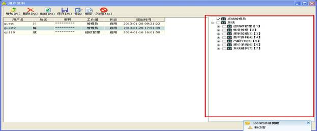 操作員管理此窗操作相對簡單,都是些添加,刪除,修改的操作,這里有一點要注意,當您添加了一個新操作員時記得將右邊的權(quán)限勾上,要不然新的操作員登錄上去后什么權(quán)限都沒有,什么東西都操作不了。