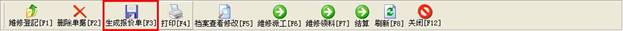 點(diǎn)擊“進(jìn)廠登記”窗口上方的 “生成報(bào)價(jià)單”按鈕,可將剛才錄入的維修單生成報(bào)價(jià)單