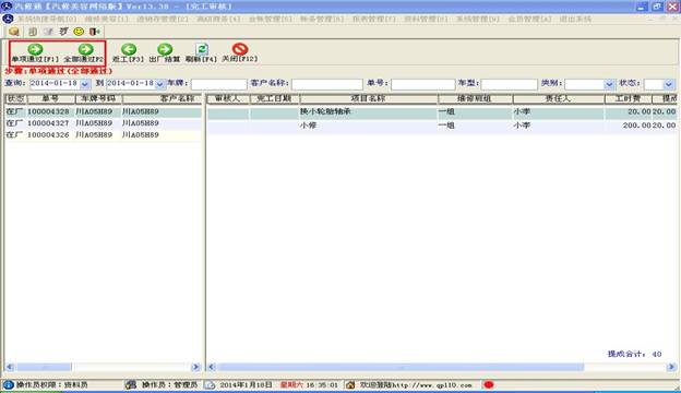完工審核操作簡(jiǎn)單,選擇單子點(diǎn)單項(xiàng)通過,或者全部通過即可。注意,沒通過審核的單子是不能夠結(jié)算的