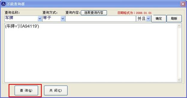 先不點(diǎn)查詢,然后繼續(xù)操作,添加日期信息,如下圖,就能找到201311號(hào)之后 車牌川A94119的維修記錄。