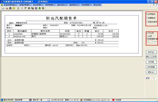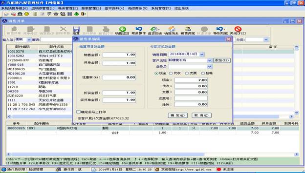 當(dāng)客戶所要購買的配件都添加到下方的表格后,點(diǎn)擊上方的結(jié)算按鈕,進(jìn)入結(jié)算操作