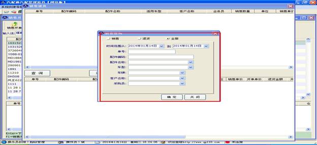 點(diǎn)擊“開單”按鈕,左邊的表格將會(huì)自動(dòng)生成單號(hào),并彈出配件選擇窗口,如下圖(2.4.2