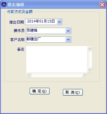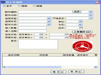 配件借入操作與配件入庫操作近似,在供應(yīng)商處輸入商家名稱,點(diǎn)“借貨”按鈕