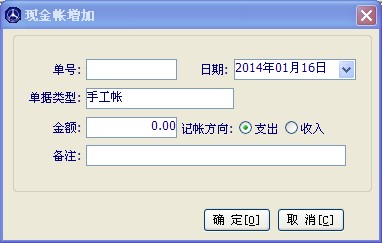 當(dāng)您進(jìn)貨或者銷售時(shí)付款或收款方式選擇為現(xiàn)金時(shí),那這筆帳就會(huì)出現(xiàn)在現(xiàn)金帳里,反之選擇為銀行是,這筆帳就出現(xiàn)在銀行帳里。您每做一筆收款或者付款,相應(yīng)的現(xiàn)金帳或者銀行帳都會(huì)有記錄。如下圖,如果您要增加手工帳,可以點(diǎn)擊增加按鈕。