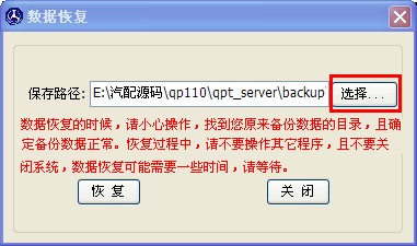 打開數(shù)據(jù)恢復(fù)窗口如下圖,保存路徑項(xiàng)的默認(rèn)位置上您軟件安裝目錄下的“backup”文件夾,如果目錄不對(duì),您可以點(diǎn)擊后面的“選擇”按鈕選擇正確的備份數(shù)據(jù)路徑。