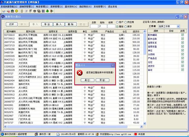 注意,在這里您不要點(diǎn)擊太快,有一個(gè)地方需要您選擇如上圖,提醒您是否清空屬性表中的現(xiàn)有數(shù)據(jù),如果您屬性表中有數(shù)據(jù)這里點(diǎn)“是”,那么之前的數(shù)據(jù)將清空,您可以點(diǎn)“否”后繼續(xù)操作。如果您的數(shù)據(jù)較多,導(dǎo)入時(shí)間可能比較長,請(qǐng)您耐心等待,不要關(guān)閉窗口。